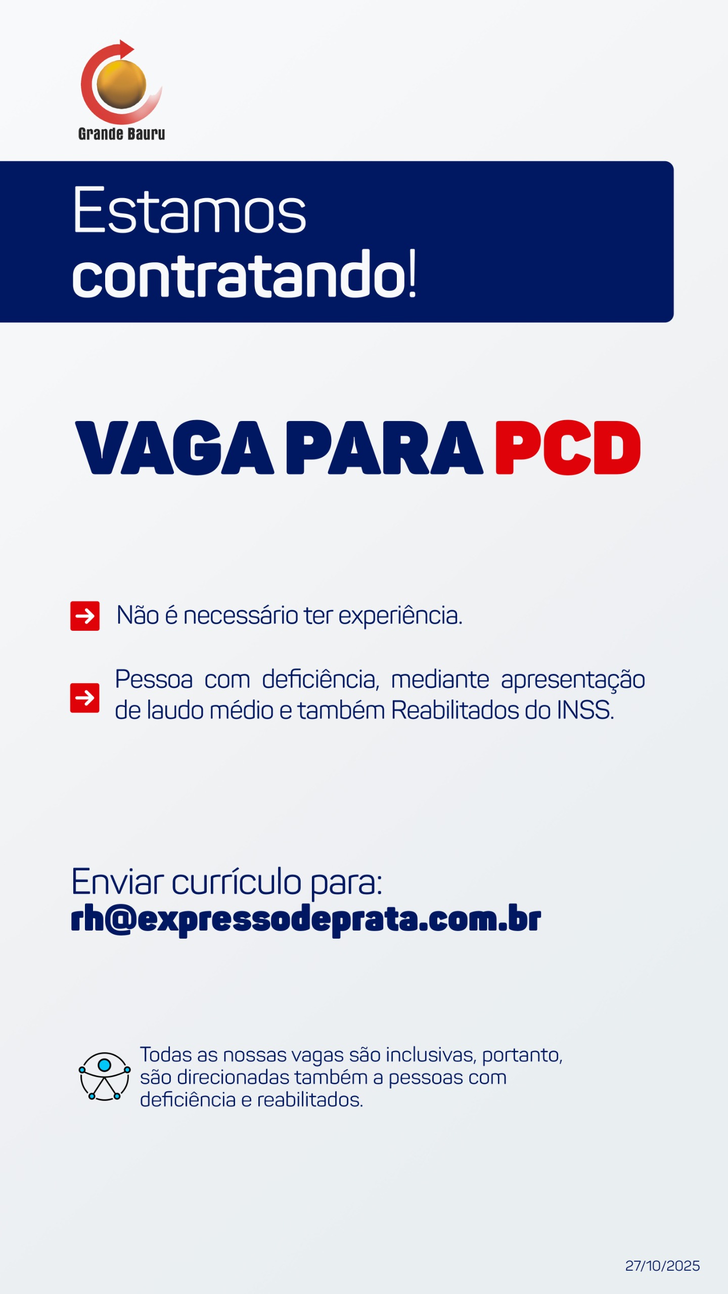 A Grande Bauru e a Expresso de Prata acreditam na força da diversidade e querem conhecer você e suas habilidades.